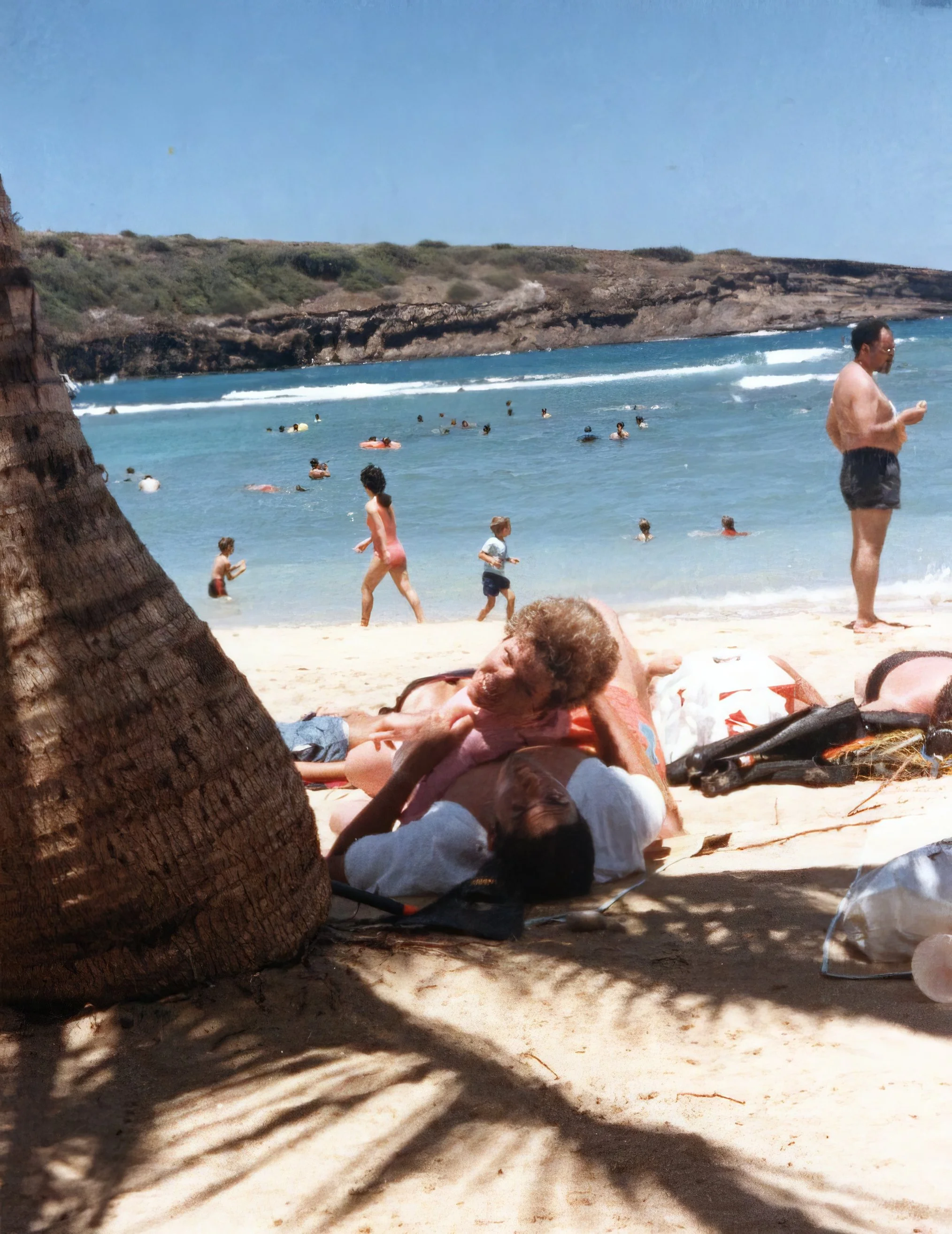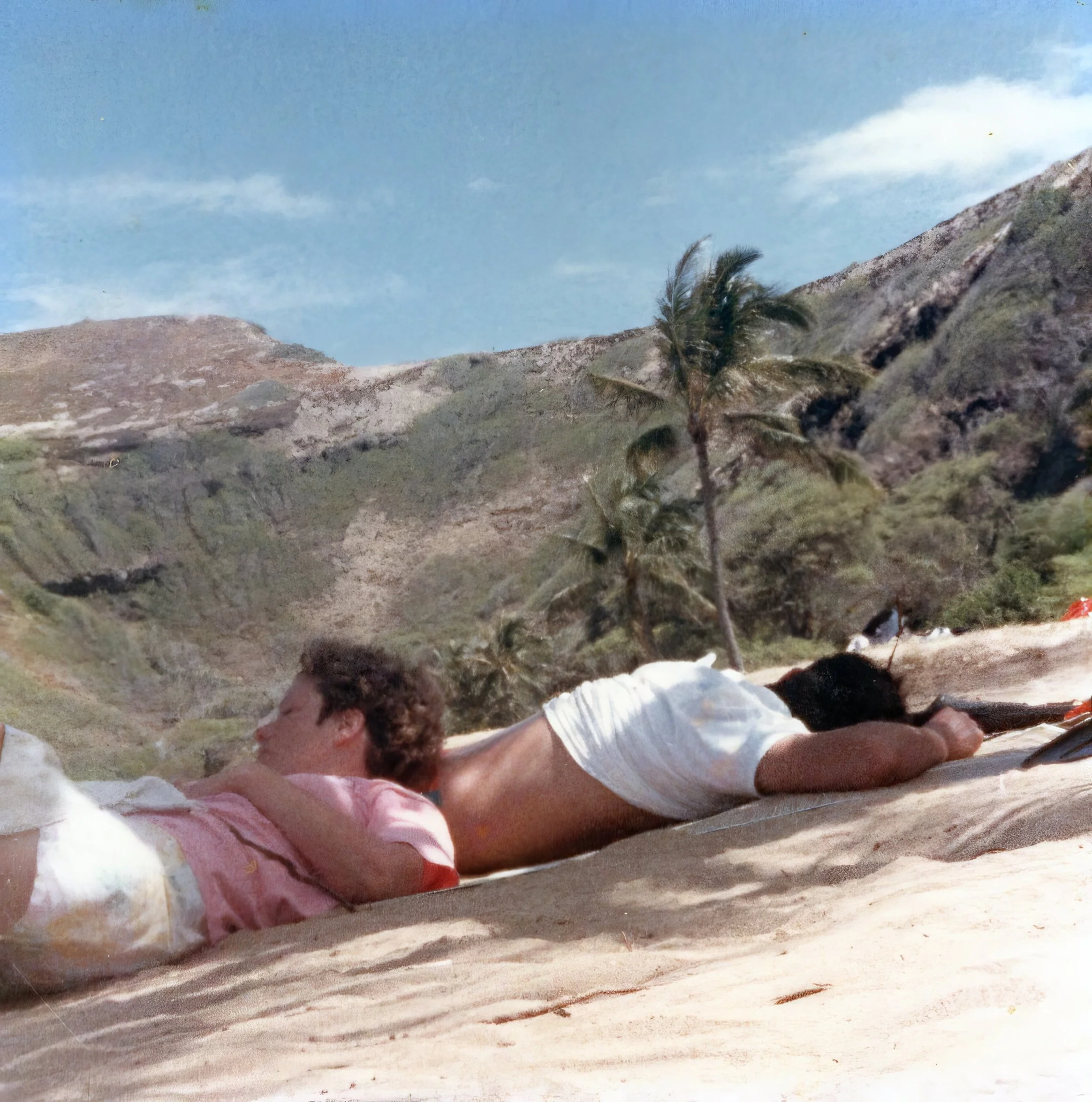 Going back in time now to the 80’s and perhaps the first trip to Hawaii to see mom. As you can see, life in Hawaii is a “hardship.”