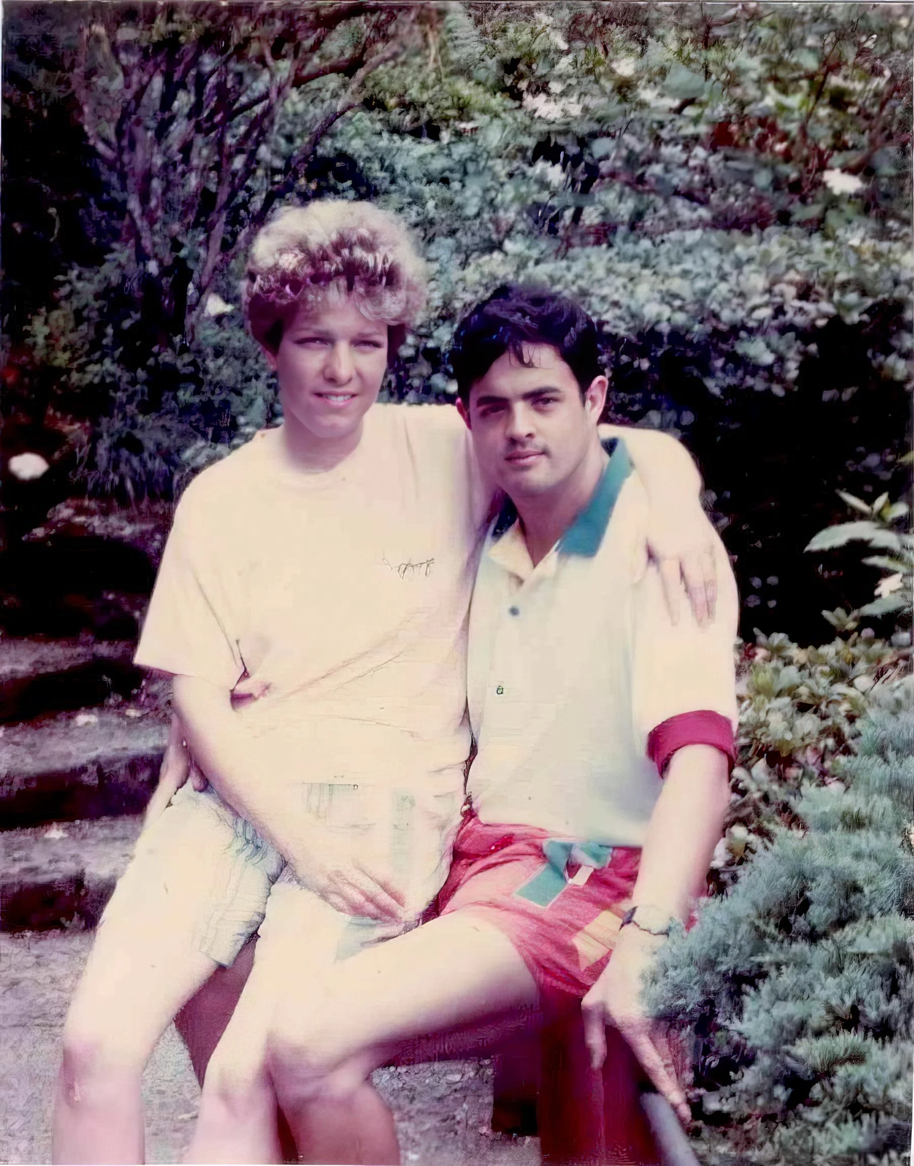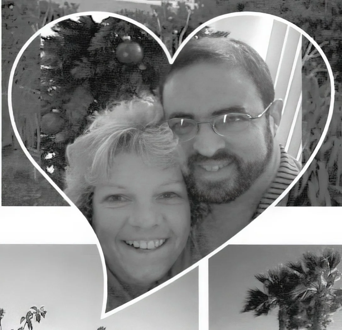 It was my first trip to Hawaii, and you can tell because of the disgusting young faces :-). The bottom right picture, I believe, is at a different time visiting Mom in California. The heart picture was taken somewhere in Florida in the ’90s, I believe.