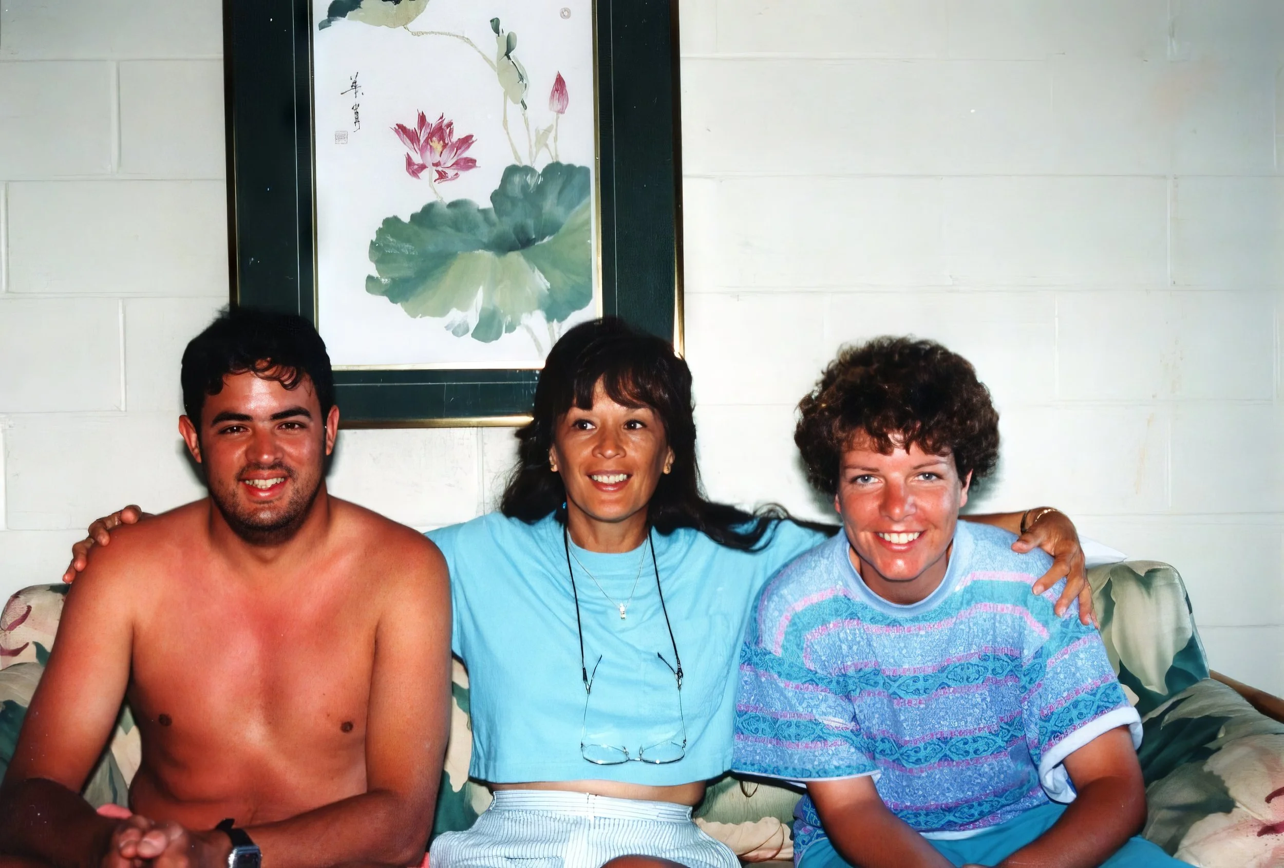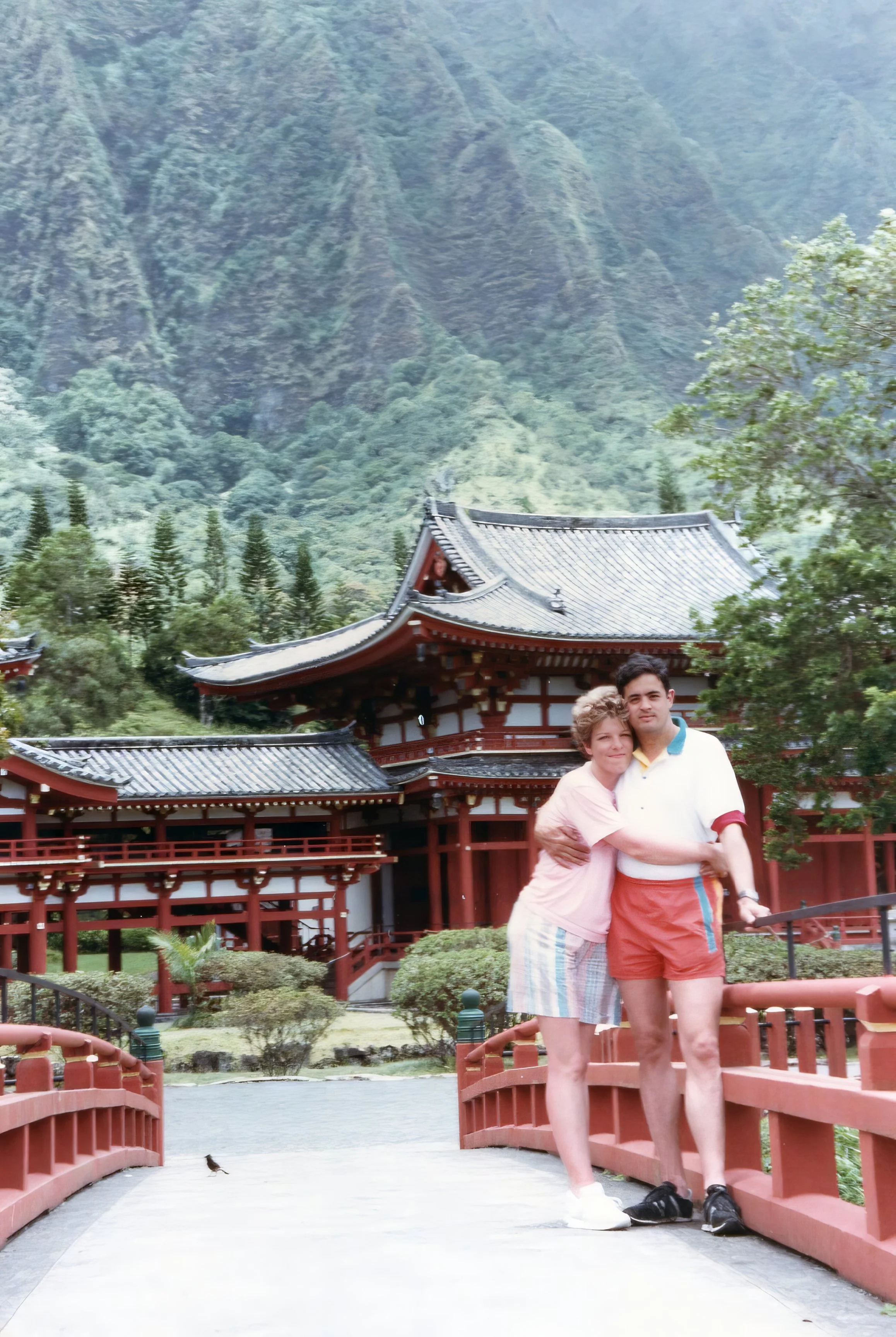Es war meine erste Reise nach Hawaii, und man kann es an den erschreckend jungen Gesichtern erkennen :-). Das Bild unten rechts ist, glaube ich, von einem späteren Besuch bei Mama in Kalifornien. Das Herz-Bild wurde irgendwo in Florida in den 90ern aufgenommen, wenn ich mich richtig erinnere.