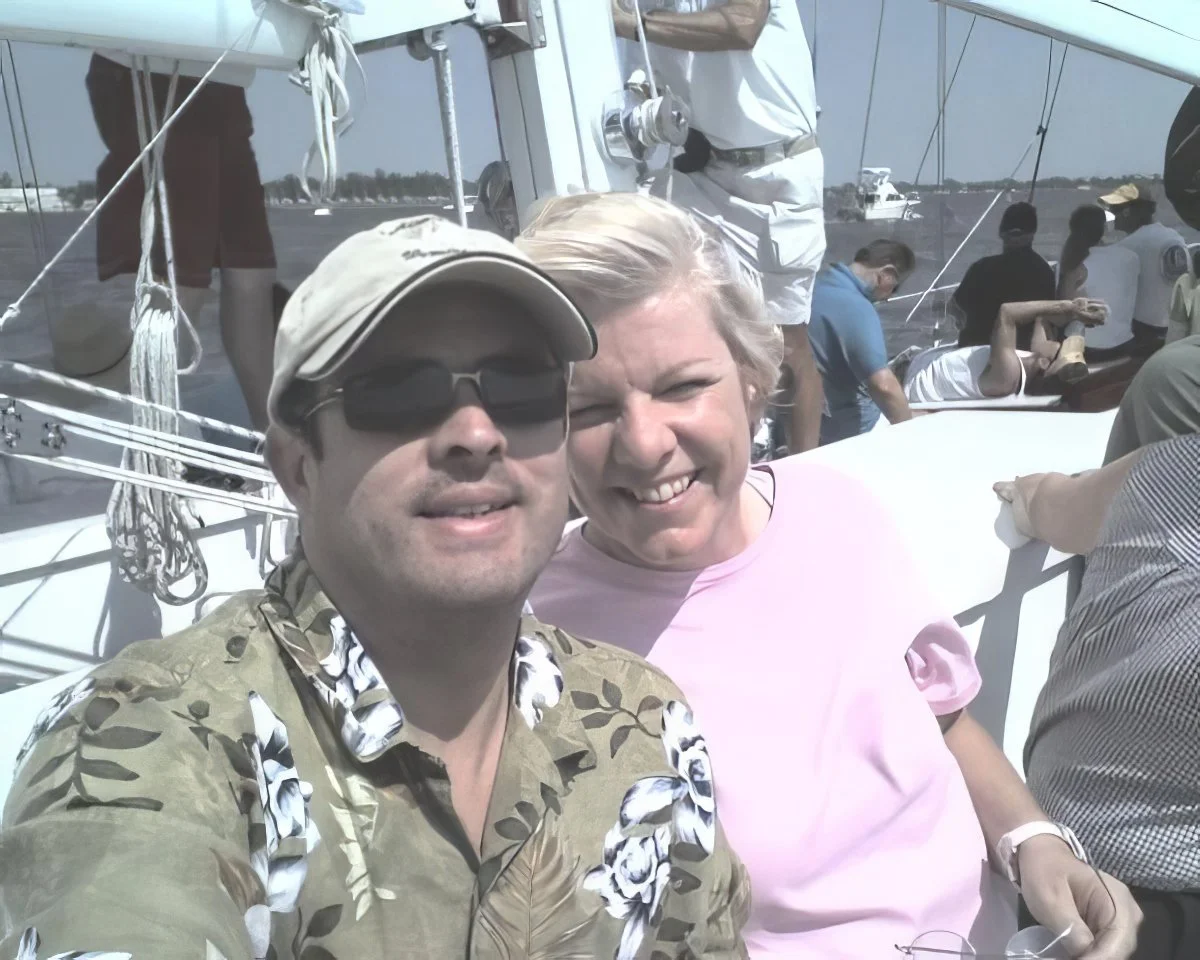Die Bilder sind jetzt etwas durcheinander, aber unten sind wir auf einem zweimastigen Segelboot in der Chesapeake Bay unterwegs. Sie und ich im „CrazyHorse“ Country-Western-Club in Hollywood, Kalifornien; in unserem Zuhause in Fairfax, Virginia, 2019; und eine frühere Reise nach Hawaii, um meine Mutter zu besuchen.